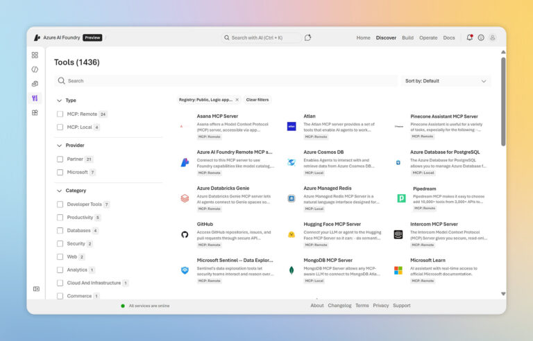 Innovation requires adaptability and choice. Foundry Models offers the broadest selection of models available on any cloud, with more than 11,000 frontier models accessible to teams. Developers are empowered to benchmark, compare, and dynamically route models to optimize performance for every task.
